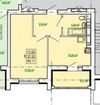 Загальна площа - 40,11 кв.м: окрема кухня 4,4 кв.м, суміщений санвузол, передпокій, балкон.