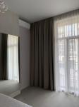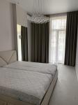 Загальна площа 116 кв. м: кухня-вітальня, спальня, дитяча, два санвузли з душем та ванною, гардеробна у передпокою, облаштований балкон, терраса.