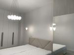 Меблі, світло, сантехніка та побутова, текстиль: вбудована кухня, газова варочна поверхня, духова шафа, витяжка, холодильник, двоспальне ліжко в спальні.