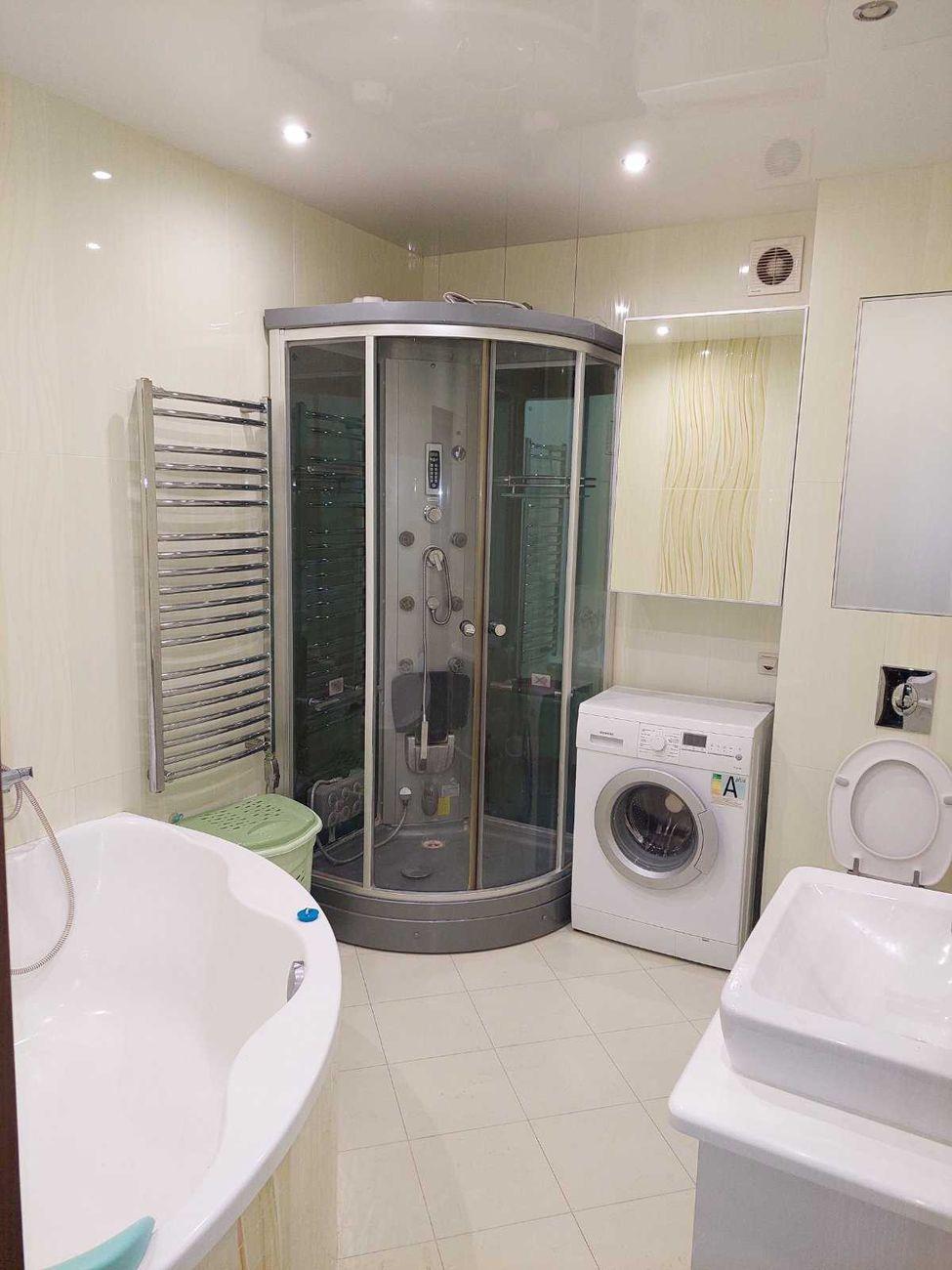 Загальна площа - 73 кв.м: спальня з великим двоспальним ліжком та гардеробною, дитяча кімната з двохспальним розкладним диваном та робочим місцем, простора зала з диваном, кухня з вбудованими меблями та побутовою технікою (холодильник, посудомийна машина, телевізор, бойлер, мікрохвильовка), санвузол з великою ванною і душовою кабіною та пральною машиною, просторий тамбур, теплий балкон з опаленням.