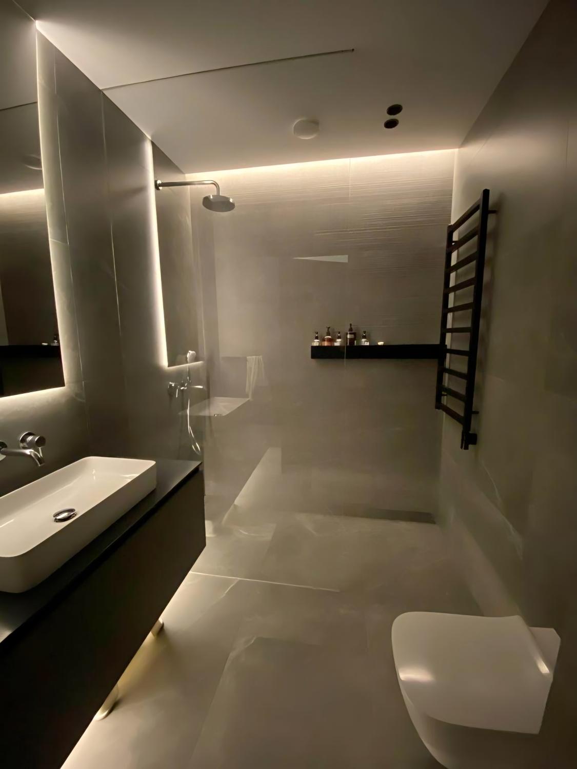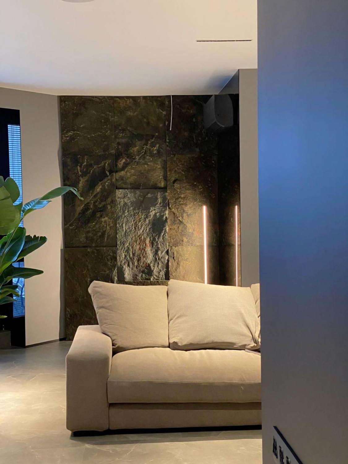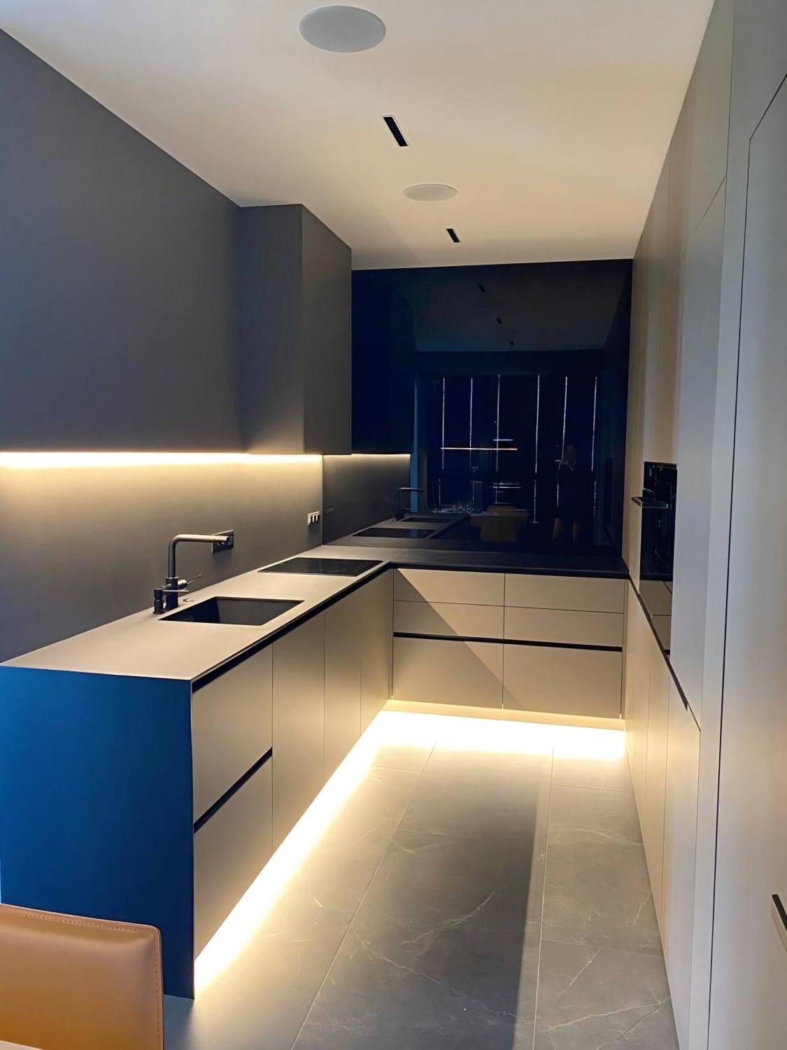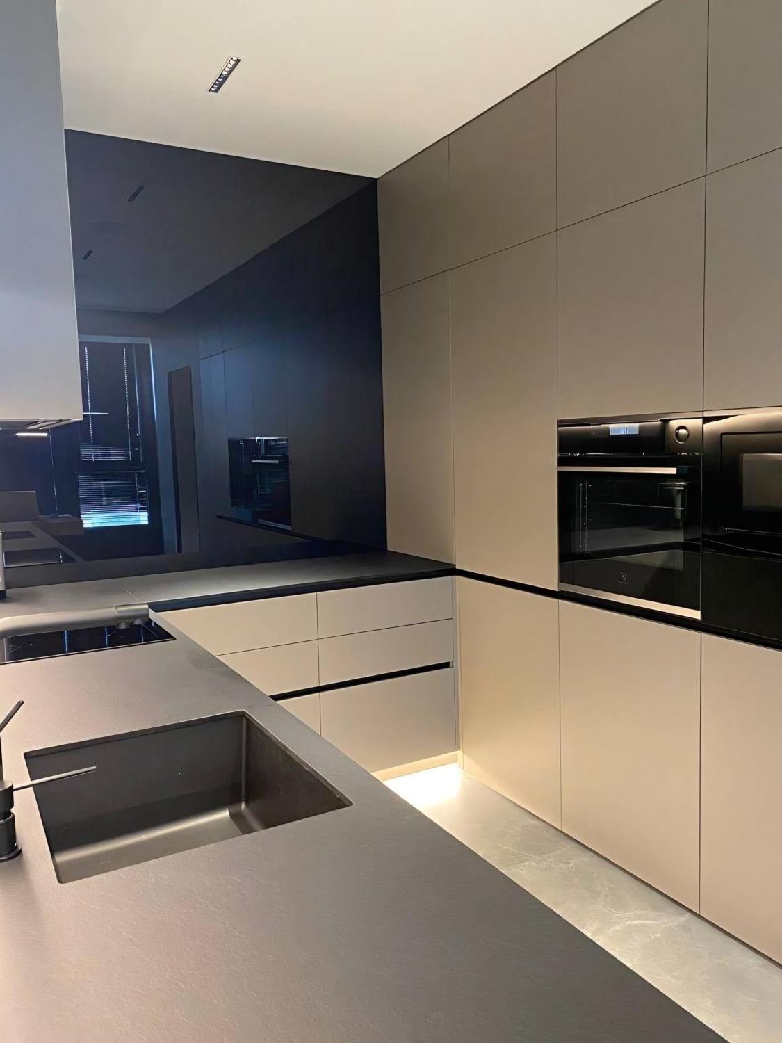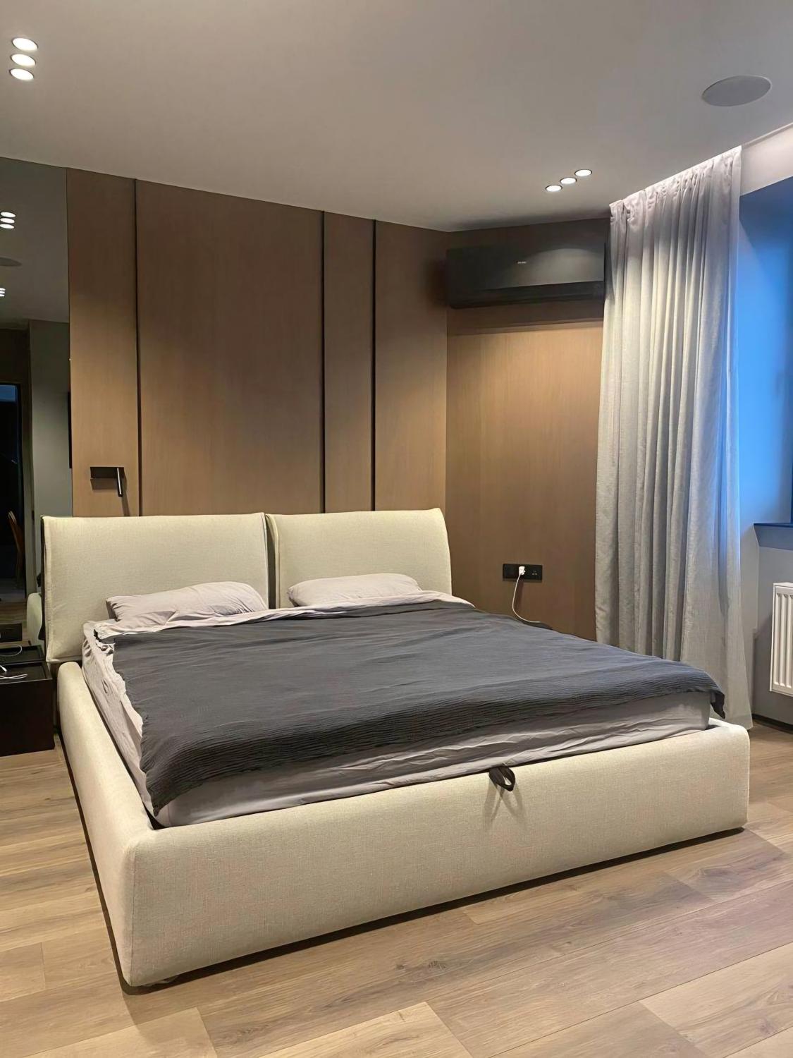 У квартирі виконано якісний ремонт за авторським проєктом у квітні 2021 року. У спальнях — топова серія ламінату виробника Quick-Step, шумоізоляція стель і стін, декоративна штукатурка, всі стіни пофарбовані мийною фарбою Fluger, акустична система в усіх кімнатах, зони електричної теплої підлоги, вбудовані змішувачі, німецька сантехніка, двері прихованого монтажу, шпоноване оздоблення стін, кам’яний шпон, багато скла в оздобленні, скляні розсувні перегородки. Преміальні м’які меблі, дві лоджії з панорамним склінням, усі вікна чорного кольору, чорні радіатори фінської фірми Purmo. Техніка: телевізори Samsung 65 та 50 діагоналі, сушильна та пральна машини AEG. Бойлер 150 літрів Drazice. Пом’якшувач Ecosoft, осмос. Кухонна техніка Electrolux дорогих серій (духова шафа з піролізом і термощупом), індукційна варильна поверхня із зонами, мікрохвильова піч, холодильник із нульовою зоною, посудомийна машина. Кондиціонери чорного кольору під дизайн квартири.