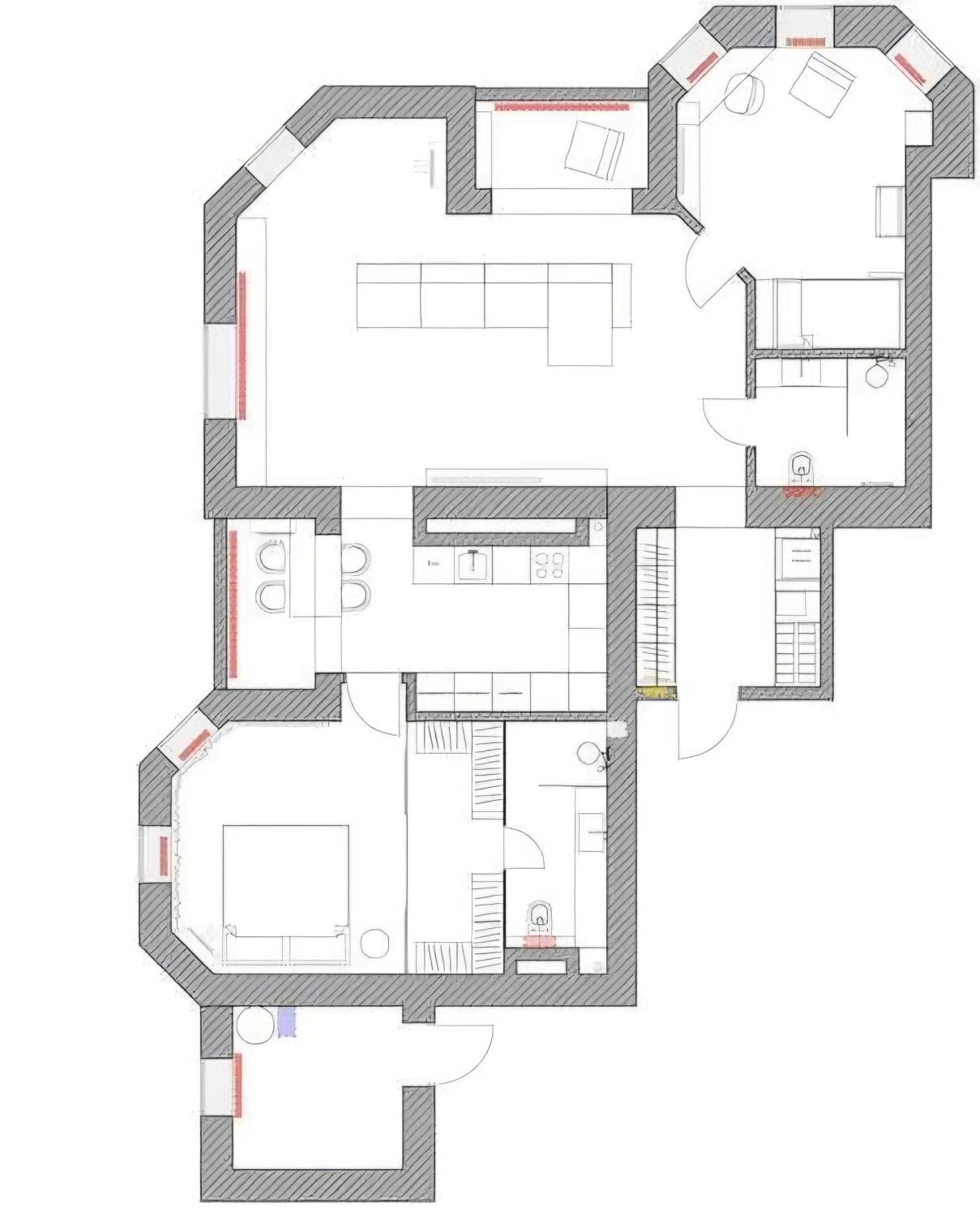 Загальна площа квартири 115 кв. м: кухня 14,7 кв. м, дві роздільні кімнати: спальня з гардеробною 17,4 кв. м і дитяча 14 кв. м, велика вітальня 25 кв. м, лоджія, два санвузли, комора, передпокій 8 кв. м. Вид із вікон на ліс, вул. Балакирєва та школу Бойка.