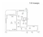 Загальна площа -45 кв.м: кухня 8,5 кв.м , окрема кімната 17,4 кв.м, санвузол 5,5 кв.м, просторий передпокій, балкон.