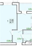 Загальна площа 37 кв. м: окрема кухня 8,24 кв. м, жилая площадь 18 кв. м.
