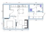 Загальна площа - 48,6 кв.м: кухня-вітальня - 20 кв.м, окрема кімната, суміжний санвузол, передпокій, засклекний утеплений балкон.