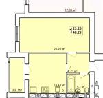 Загальна площа - 49 кв.м: кухня-вітальня 16 кв.м, спальня, санвузол.