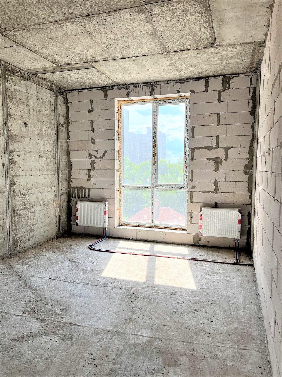 Квартира у будiвельному станi. Укомплектована металопластиковими вікнами, металевими вхідними дверима. Горизонтальне розведення опалення по квартирі дозволяє встановити індивідуальний лічильник тепла.