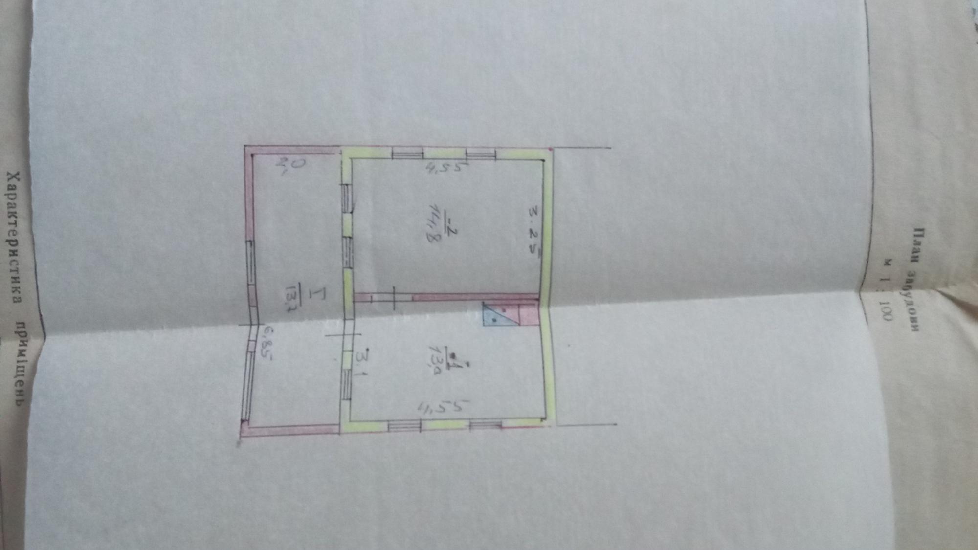 Загальна площа - 42 кв.м: кухня 13 кв.м, три житлові кімнати.