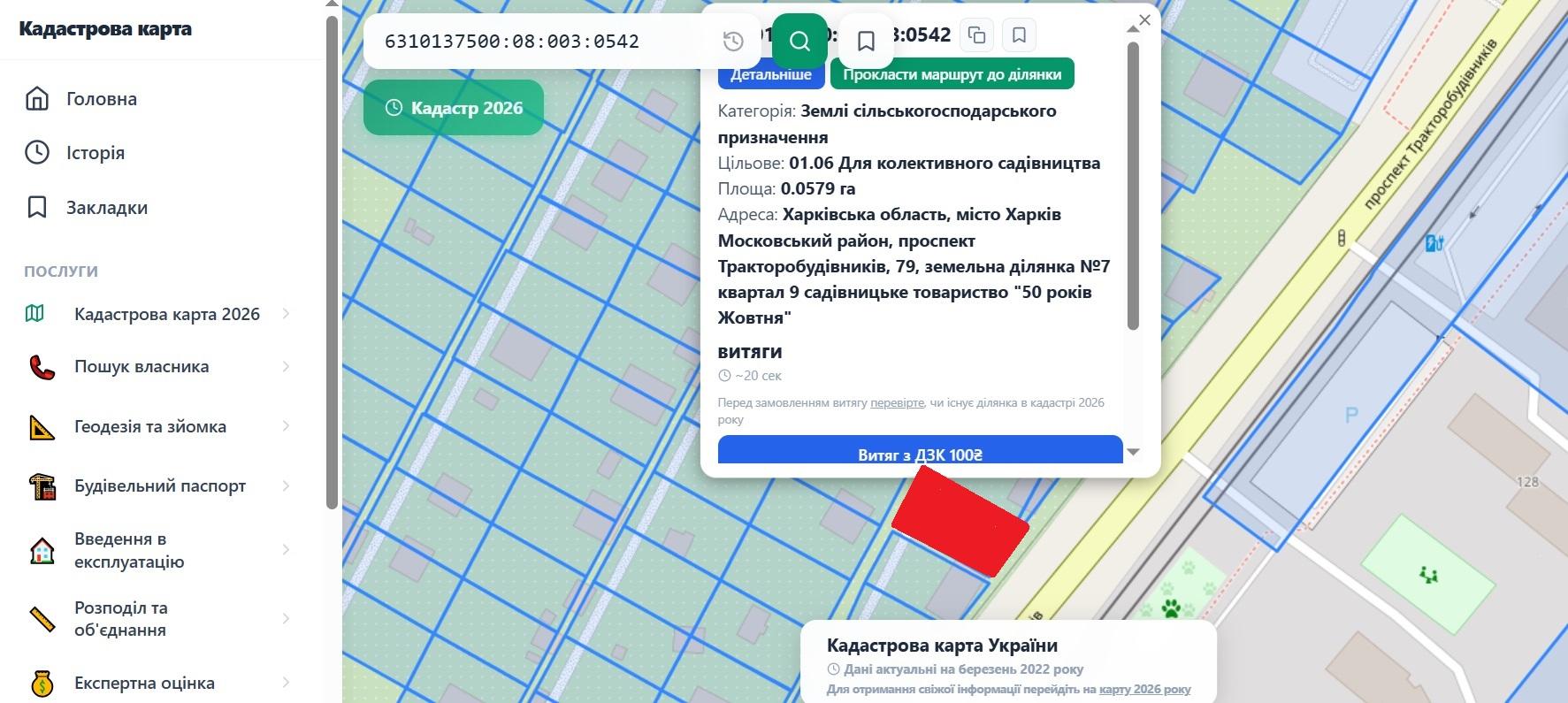 Кадастровий номер - 6310137500:08:003:0542