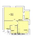 Загальна площа 46,6 кв. м: окрема кухня 12 кв. м, житлова кімната - 20,7 кв. м, балкон, просторий передпокій, суміжний санвузол.