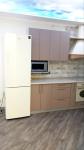 Квартира укомплектована вбудованою кухнею, побутовою технікою, облаштовані санвузли. В кімнатах без меблів.