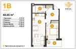 Загальна площа – 49,85 кв.м: ізольвана спальня, кухня-вітальня 21,28 кв.м, санвузол, передпокій, балкон.