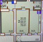 Загальна площа 78,61 кв.м: кухня 16 кв.м, дві кімнати 18 кв.м і 16 кв.м, два санвузли, велика лоджія.