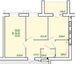 Загальна площа - 58 кв.м: дві окремі кімнати, окрема кухня - 10,3 кв.м, роздільний санвузол, балкон.