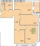 Загальна площа – 92,11 кв.м: кухня 16,2 кв.м з лоджиєю 5,26 кв.м, кімнати – 15,72 кв.м, 19,2 кв.м та 12,07 кв.м, два санвузли, передпокій.