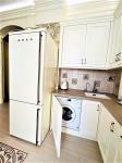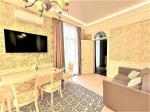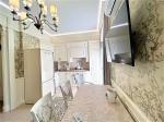 Меблі, світло, сантехніка та побутова техніка Smeg, текстиль: вбудована кухня, газова варочна поверхня, духова шафа, витяжка, холодильник, система фільтрації води, пральна машина, smart TV, м'які меблі, кондиціонер, двоспальне ліжко в спальні.