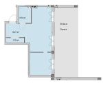 Загальна площа 51,2 кв. м: кухня-вітальня, спальня, суміщений санвузол з душем, гардеробна у передпокою, тераса 30 кв.м.
