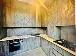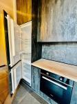 Меблі, світло, сантехніка та побутова, текстиль: вбудована кухня, газова варочна поверхня, духова шафа, витяжка, холодильник, двоспальне ліжко в спальні.