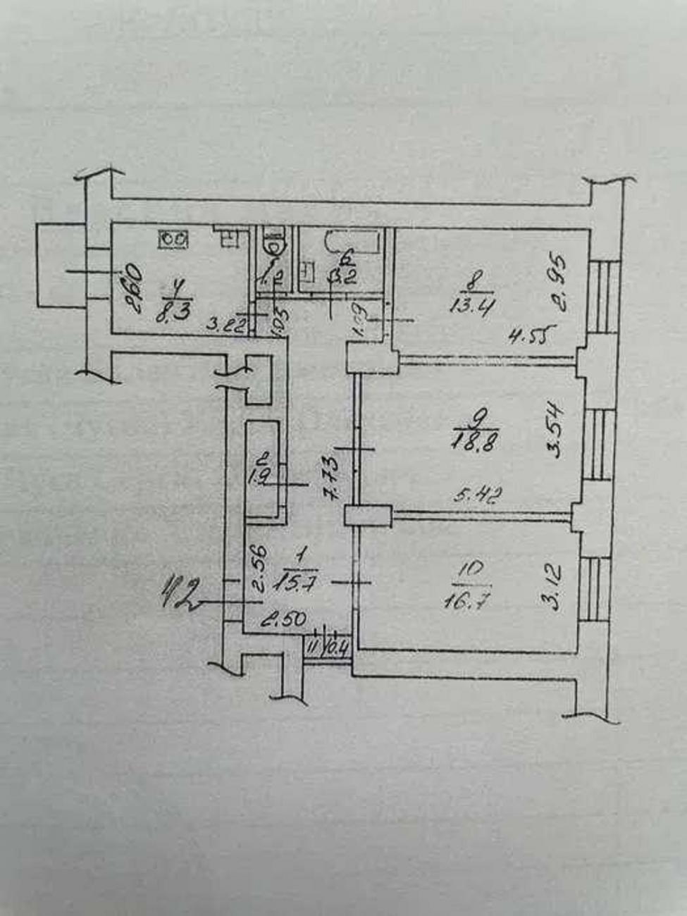 Загальна площа: 80,2 кв.м: кухня 8,3 кв. м, три окремі кімнати (16,7 кв.м, 18,8 кв.м та 13,4 кв.м, окремий санвузол, балкон, просторий передпокій.