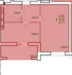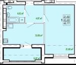 Загальна площа 47 кв.м: кухня 9 кв.м, кімната 17 кв.м, суміжний санвузол, лоджия.