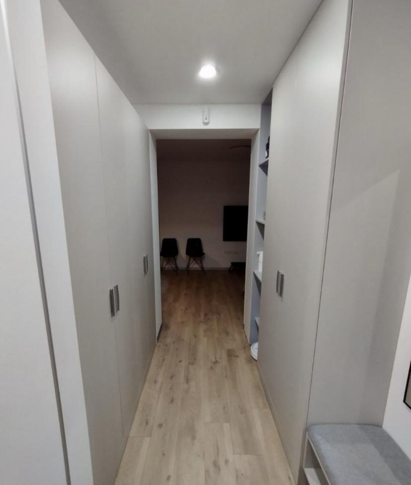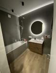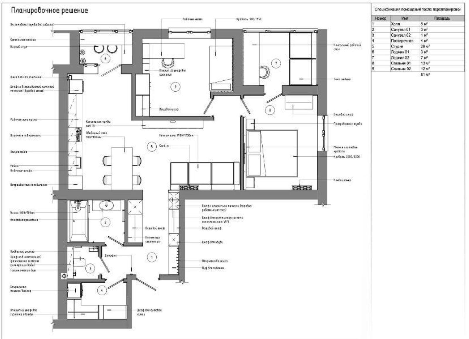 Загальна площа 81 кв.м: кухня-вітальня - 29 кв.м з виходом на лоджию - 3 кв.м (вбудована кухня з посудомийкою, індукційною плитою, мікрохвильовкою, окремостоячий інверторний холодильник Samsung, тепла підлога), спальня - 13 кв.м, дитяча - 12 кв.м, лоджия-кабінет 7 кв.м, два санвузли (вбудовані меблі, унітаз Grohe, гігієнічний душ, рукомийник, змішувач Grohe, тепла підлога, акрілова ванна villeroy and boch 180см, електрична сушарка для рушників), пральня-гардеробна - 4 кв.м(вбудовані меблі, вентиляція, тепла підлога, бойлер 100л, пральна і сушильні машини Bosch), передпокій - 8 кв.м (дві вбудовані шафи, вішак з мʼяким пуфом для взуття, цифровий домофон, тепла підлога).