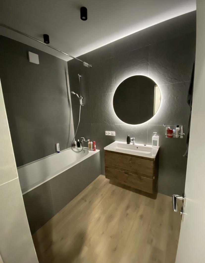 Опалення і вентиляція: 2 кондиціонери Cooper&Hunter в спальні і кухні-вітальні, 7 зон теплої підлоги з керуванням через застосунок і цифрові термостати. Сталеві радіатори. Вентиляція з таймером в туалеті і ванній.