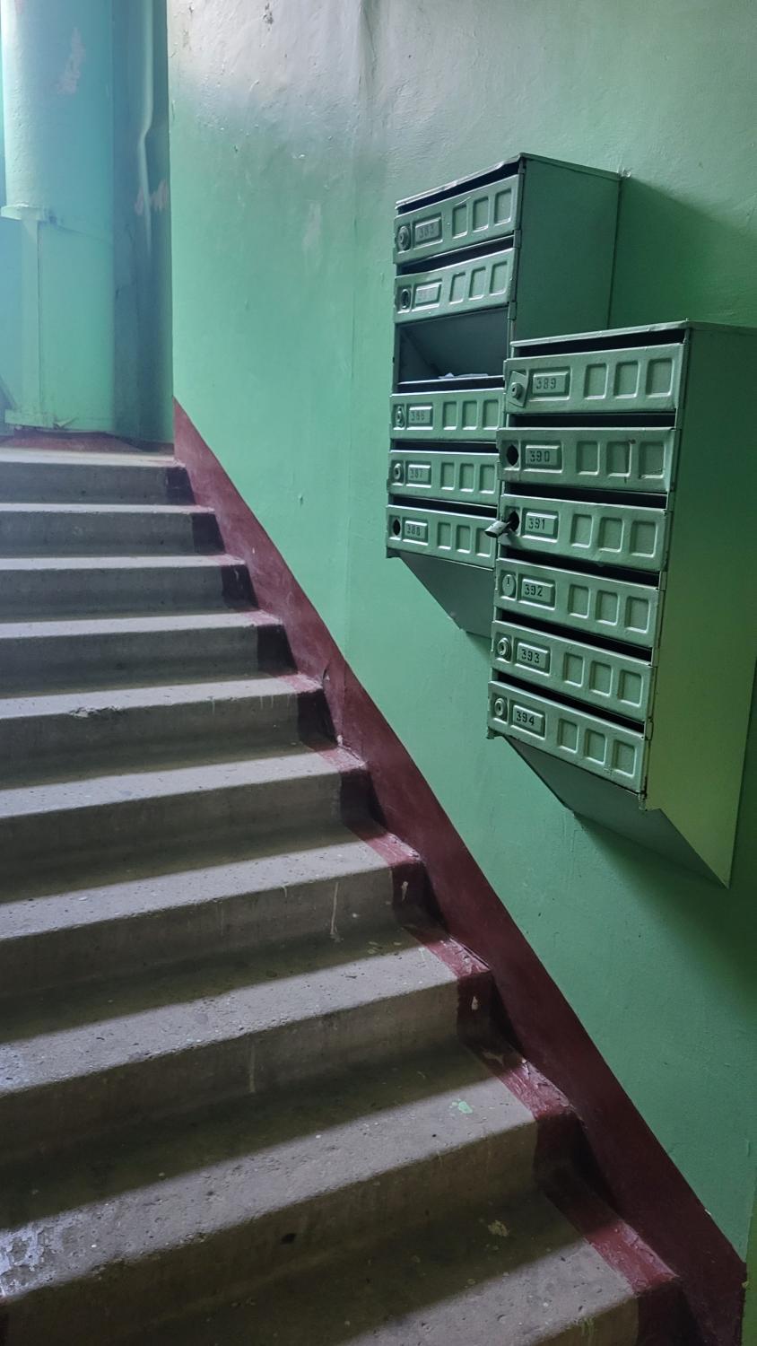 8-й поверх 9-поверхового цегляного будинку. З вікон відкривається краєвид на двір та вулицю.