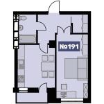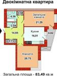 Загальна площа 39,3 кв.м: окрема кухня 12 кв.м з лоджією 2,25 кв.м, спальня 15 кв.м, санвузол 3,8 кв.м, просторий передпокій 6 кв.м, вбиральня 2 кв.м.