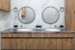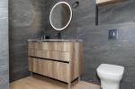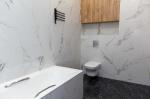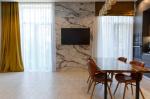 - два санвузли: ванна кімната із французькою сантехнікою, дизайнерськими дзеркалами із підсвіткою, італійською плиткою, столешницею із керамограніту, та душова із великим тропічним душем, дизайнерськими дзеркалами,
