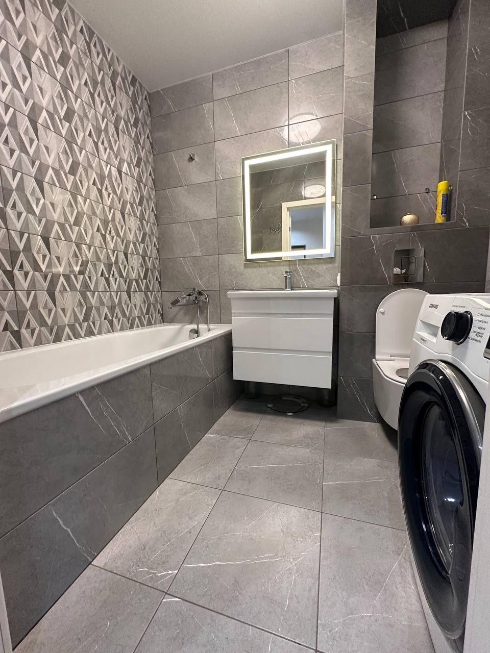 Сучасний євроремонт за дизайнерським проєктом із використанням якісних матеріалів. Повний комплект нових меблів та побутової техникі.