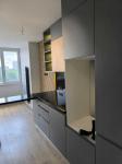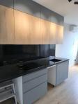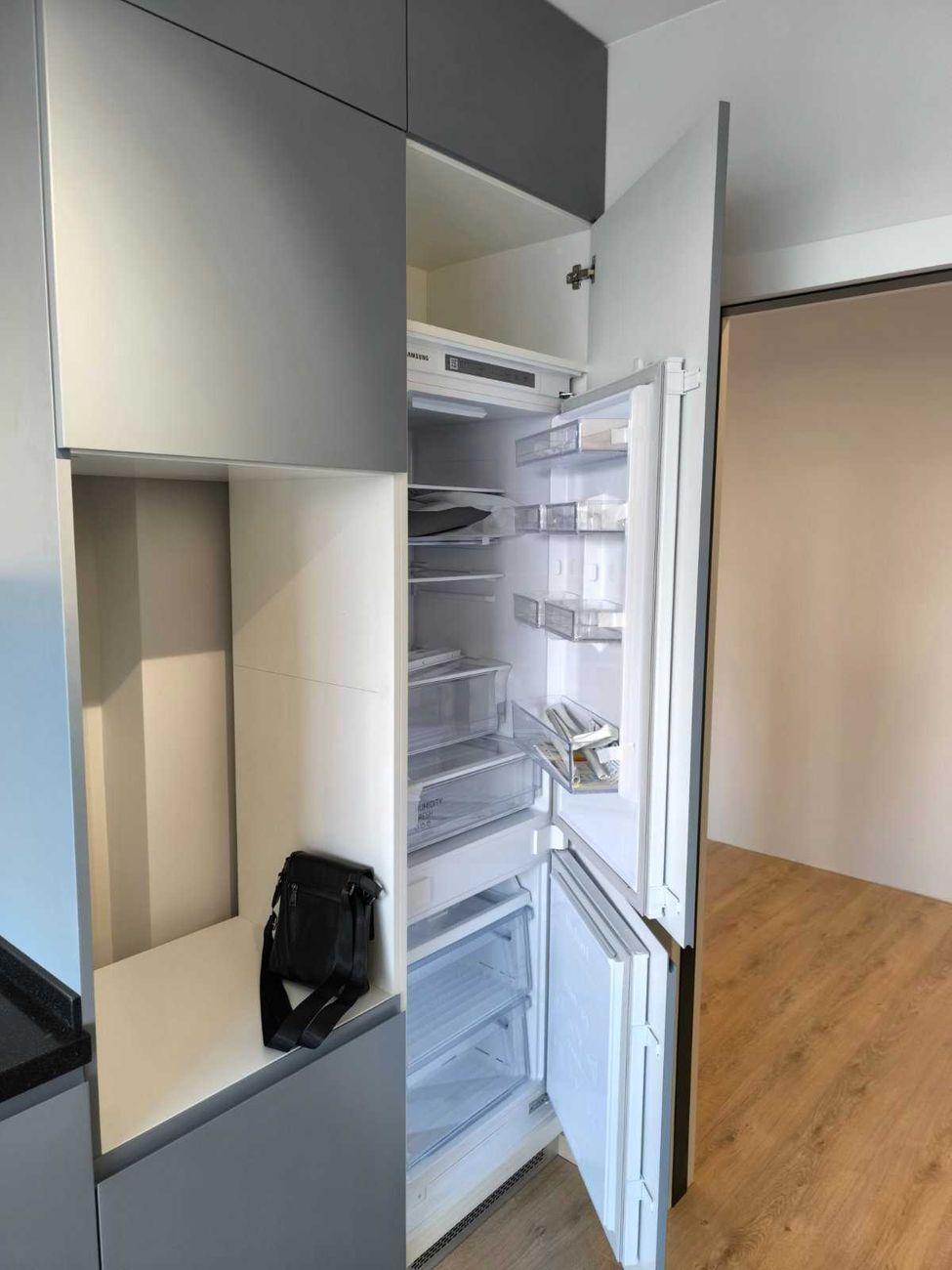 На кухні корпусні меблі, з вбудованим холодильником і варильною поверхнею, м'яких меблів немає.
