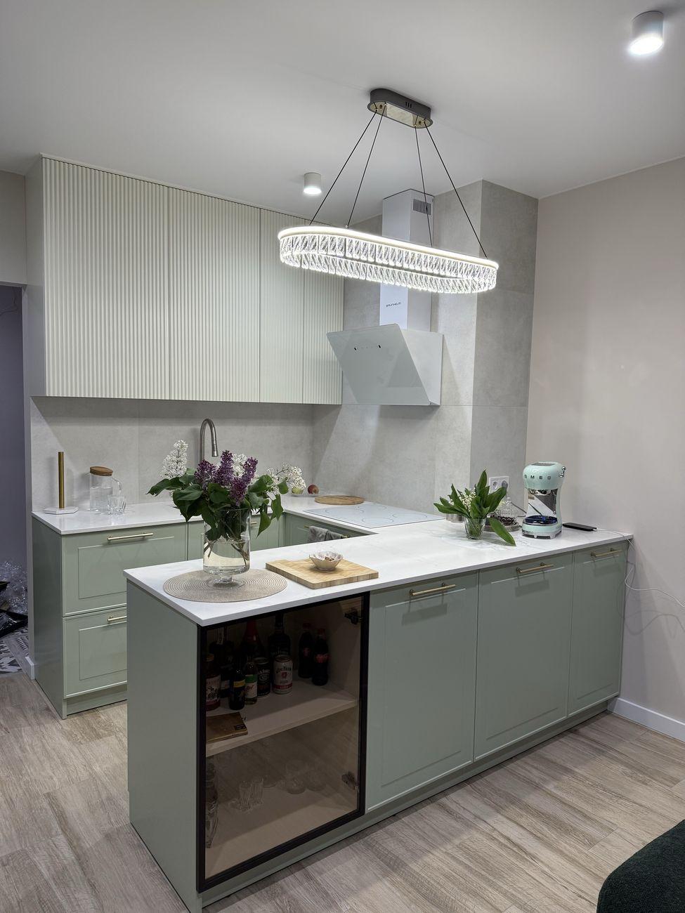 Кухня зроблена з дорогих матеріалів , кам'яна стільниця.