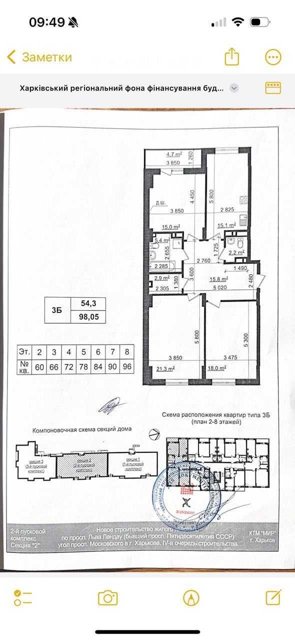 В квартирі 2 санвузла, двостороння, загальна площа 99.5 метрів. Найкраще планування в будинку, документи оформлені.