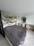 Квартира складається з просторої кухні-студії на першому поверсі, за розсувною системою — шафа. Масивні дерев'яні сходи ведуть на другий поверх- де є спальня з великим ліжком, меблями та шафою.