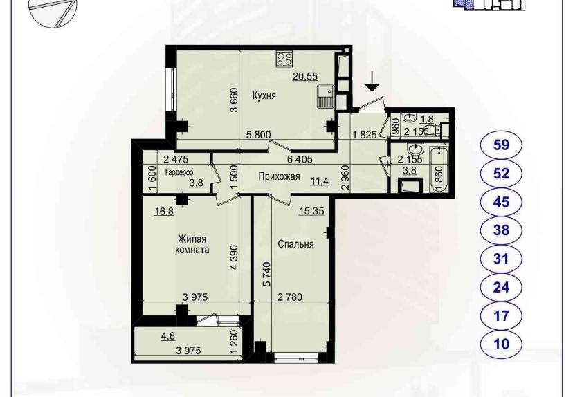 9-й поверх 14 поверхового монолітно-каркасного будинку.