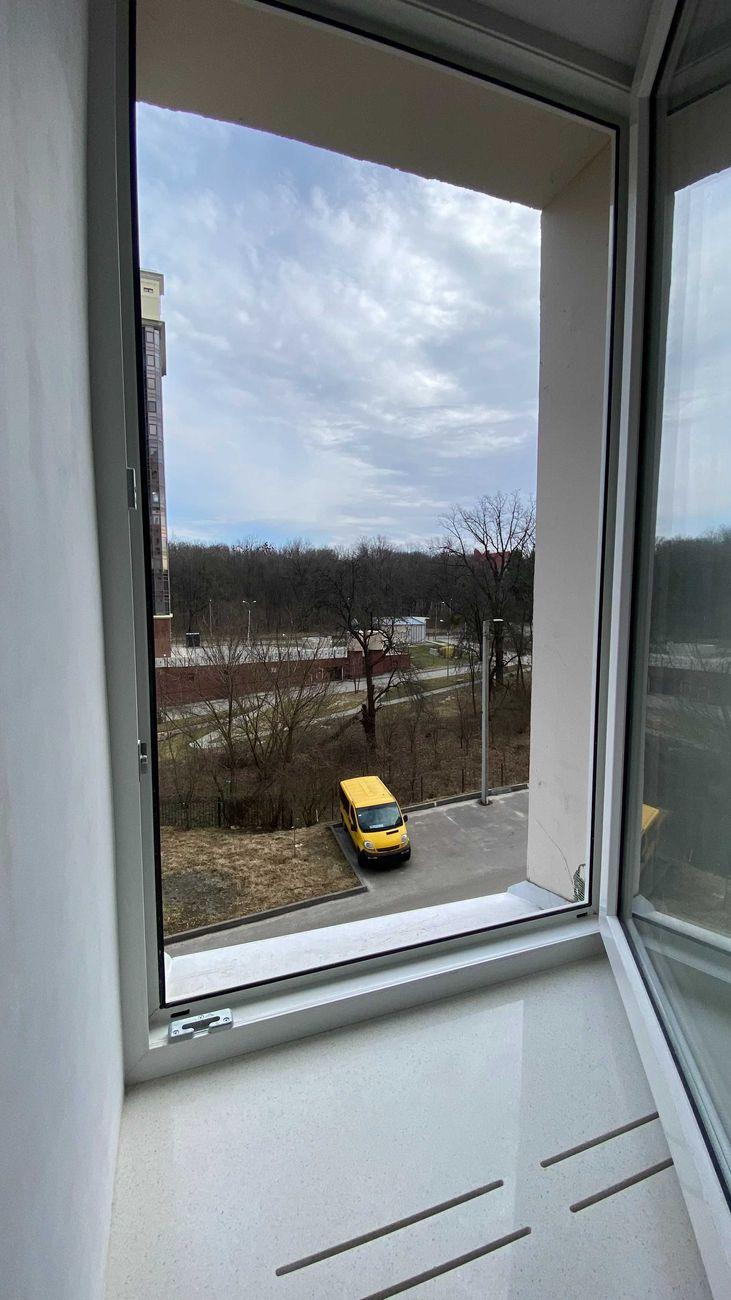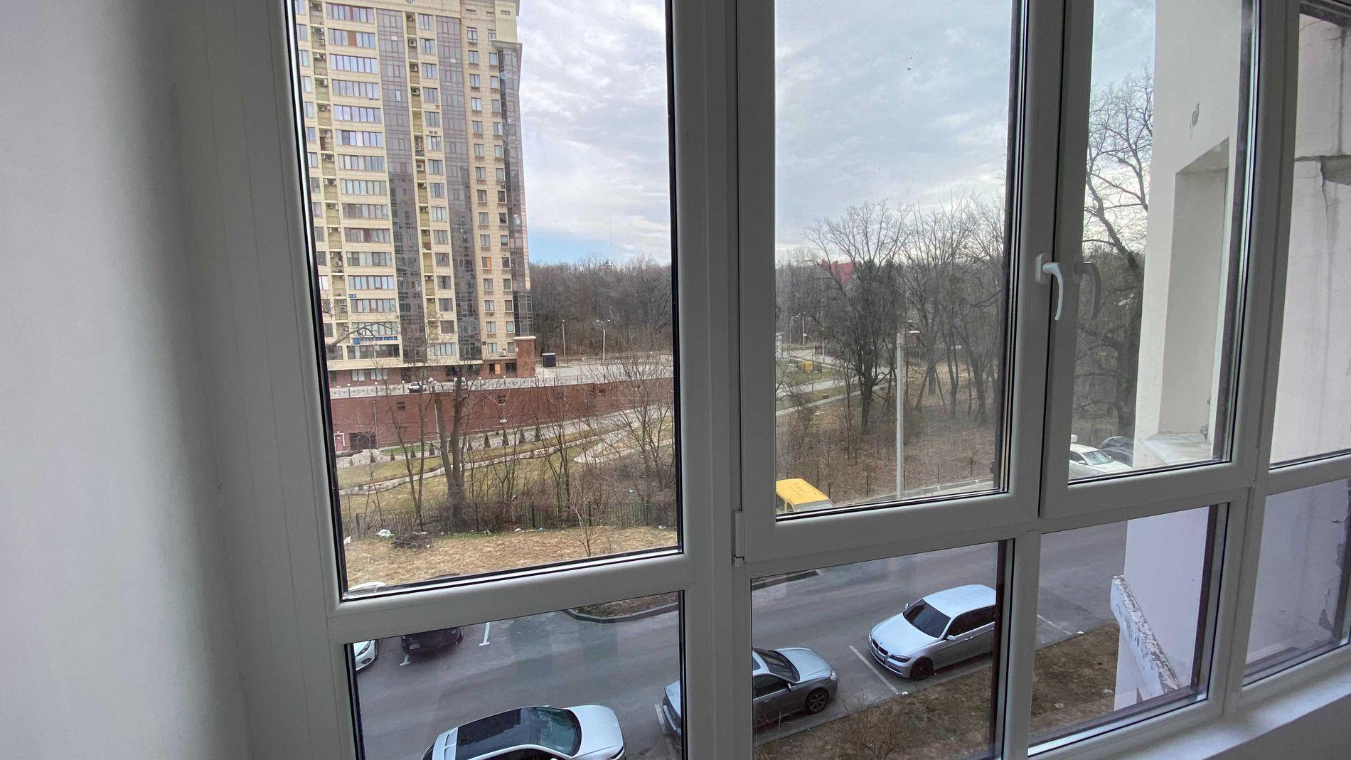 Загальна площа квартири 65,2 кв.м: кухня-вітальня 12,6 кв.м, дві ізольовані кімнати: спальня з гардеробною та кабінет, лоджія, 2 санвузла. Вид з вікон на Лісопарк.