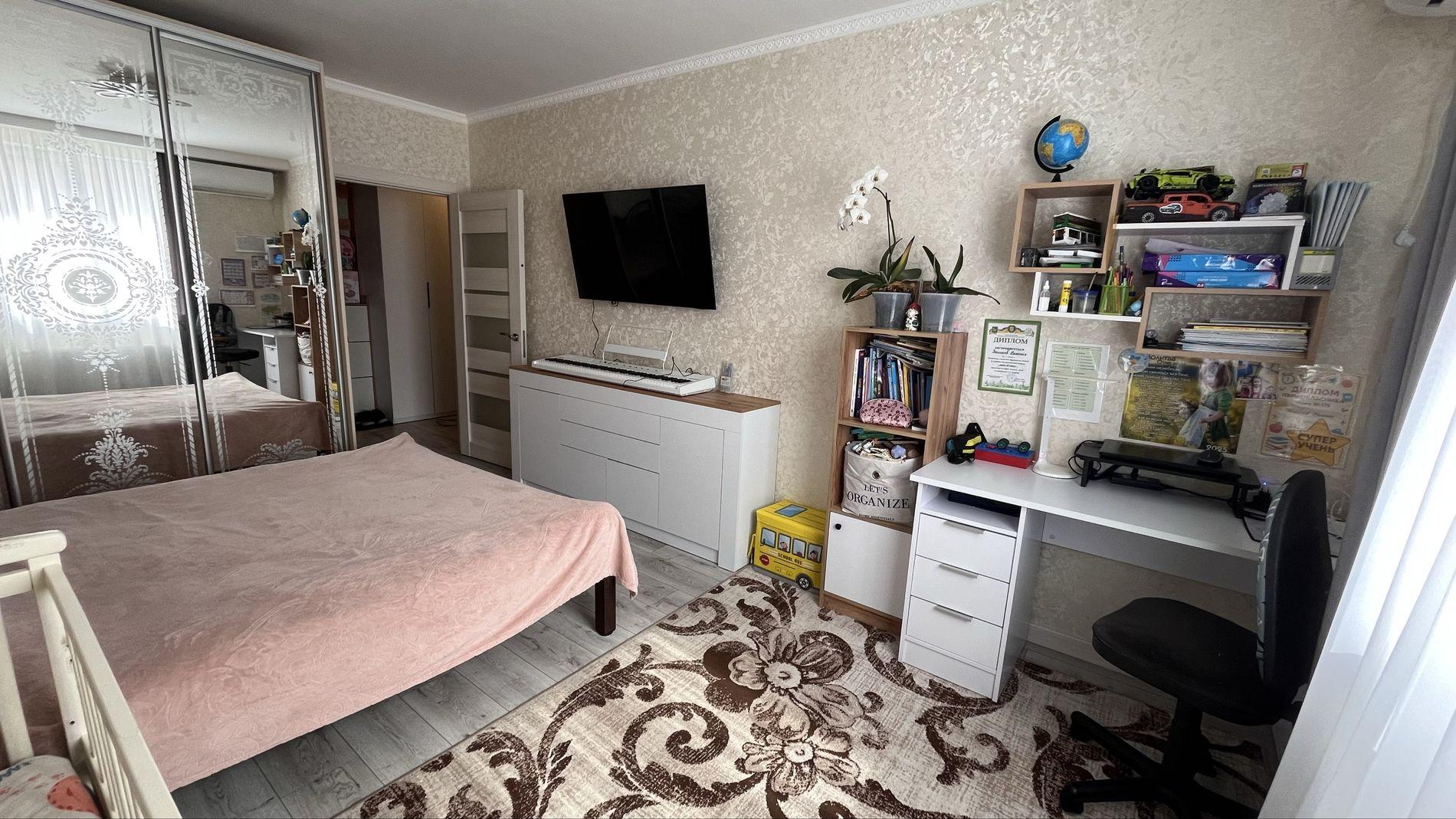 В квартирі зроблено капітальний ремонт. Встановлені лічильники. Облаштована меблями і технікою.