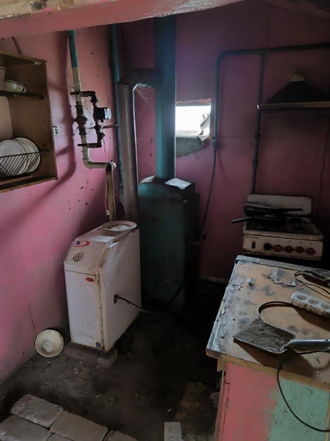 Будинок дерев'янній, обкладенний зверху цеглою.